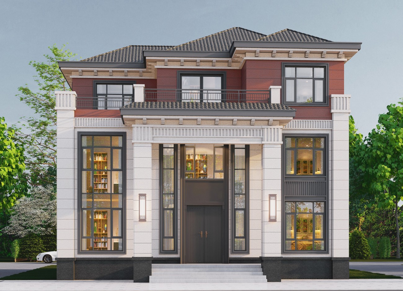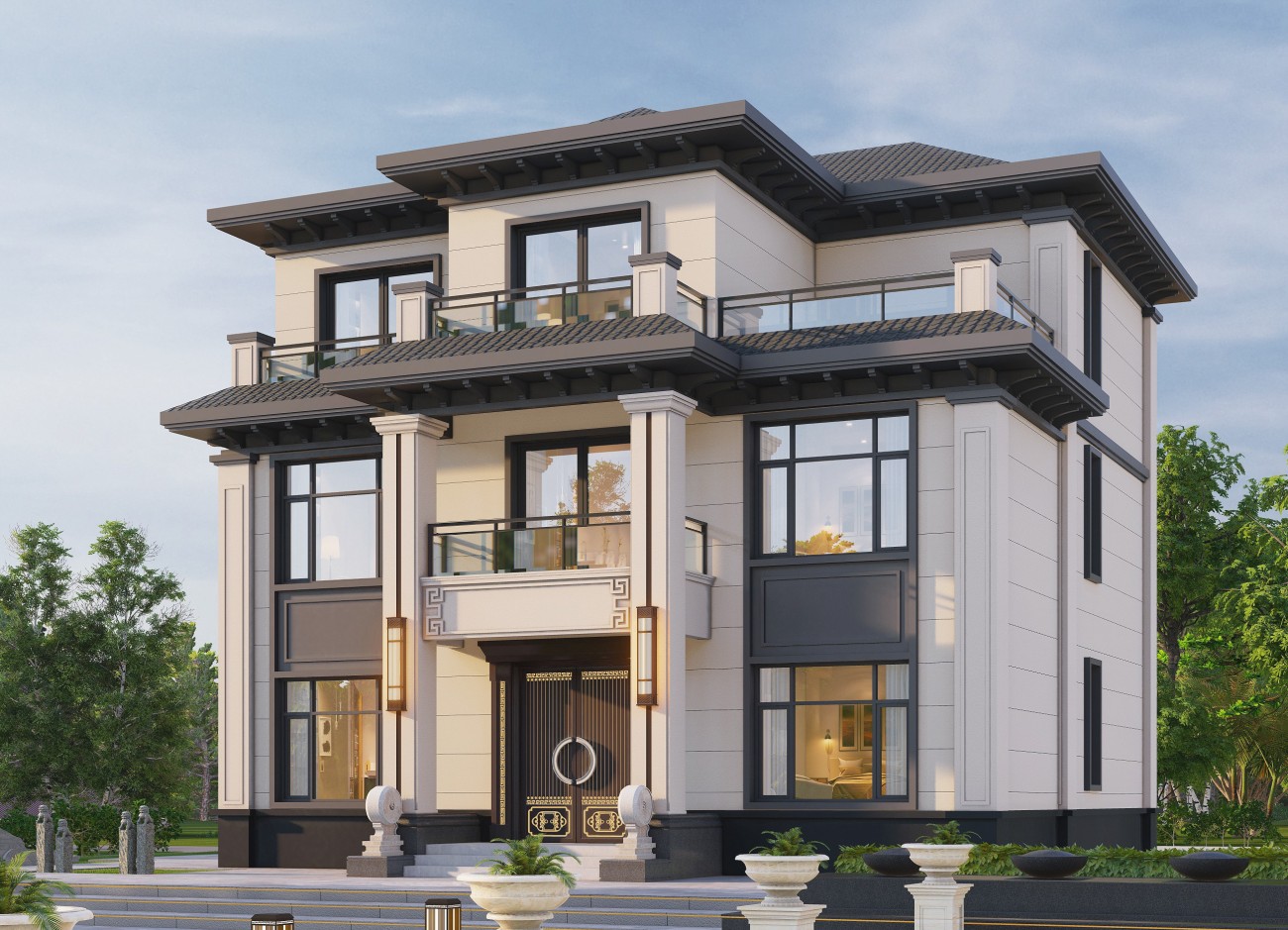 剑阁12 新中式两层半(12.8x13.06米)-【易设计】